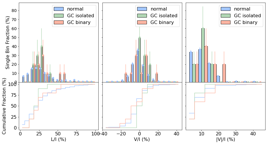 图4,25颗球状星团脉冲星的偏振度分布与银盘脉冲星对比图,银盘脉冲星数据引自Wanget al. (2023)。